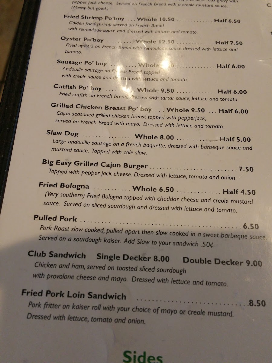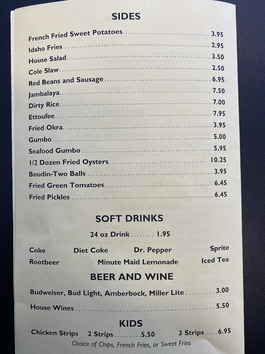 Start your culinary journey with tantalizing sides like Fried Green Tomatoes and Gumbo, or indulge in hearty entrees such as Shrimp Etouffee and Seafood Gumbo. Each dish bursts with genuine Louisiana flavor, making it a must-visit for any food lover.